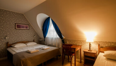 Hotellimaja tubades on stiilsed tapeedid, dušš, TV ja telefon.